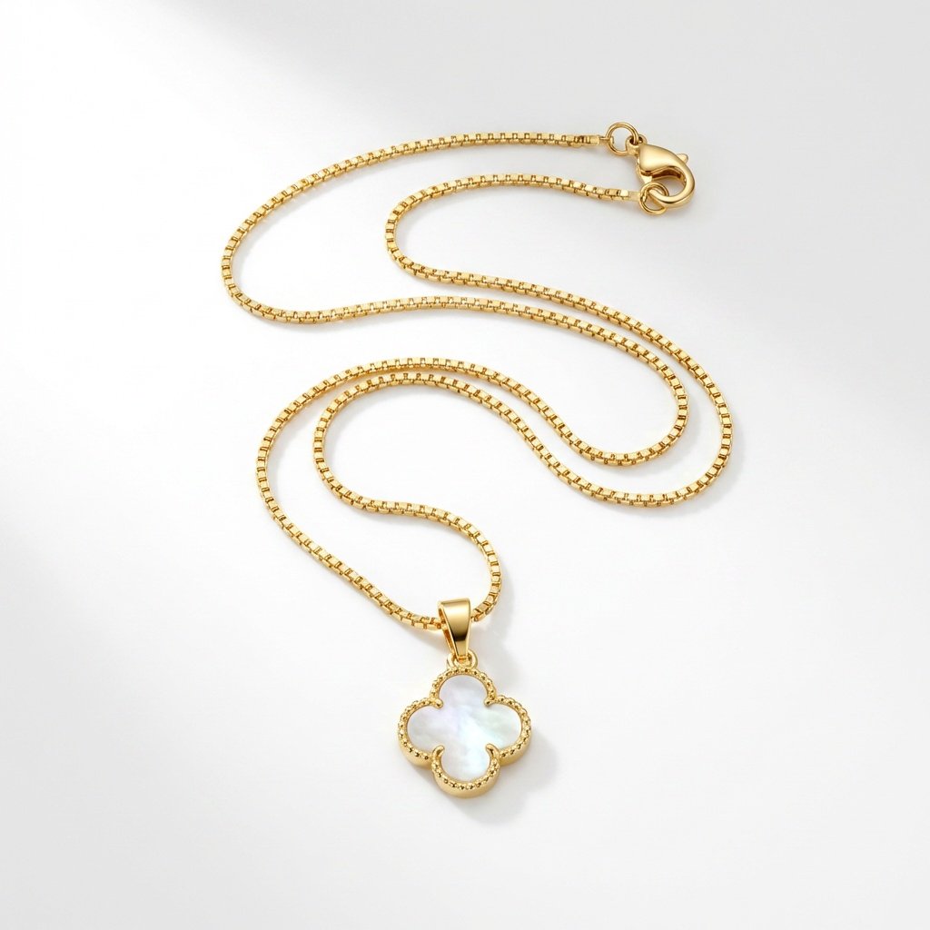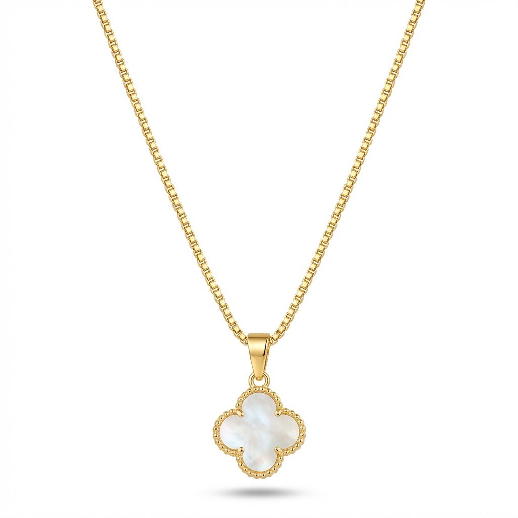 Colar Flor Perolata 18k com Madrepérola – Corrente Veneziana 45cm, Hipoalergênico e Fecho Boia